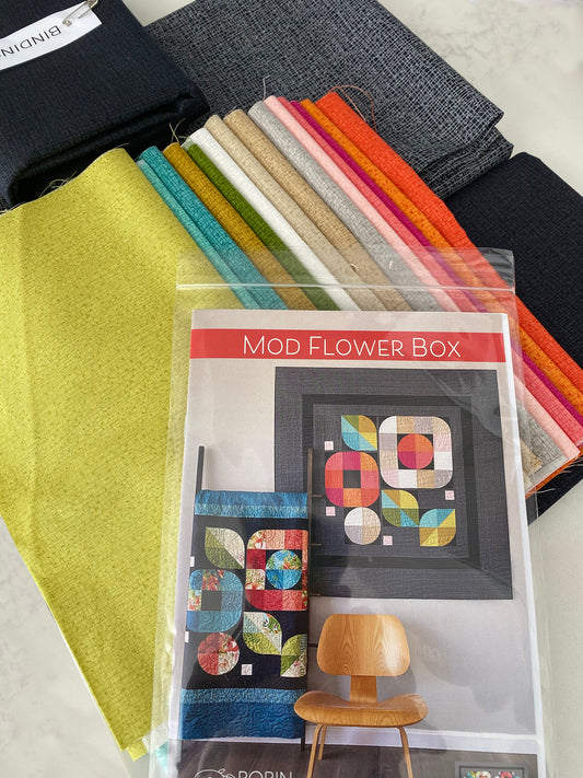 A QUILT KIT of MOD FLOWER BOX in Original palette, 51 x 51" Wall/Lap