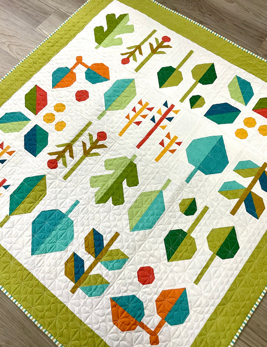 A Quilt Kit of Leaf Press in Springy Greens
