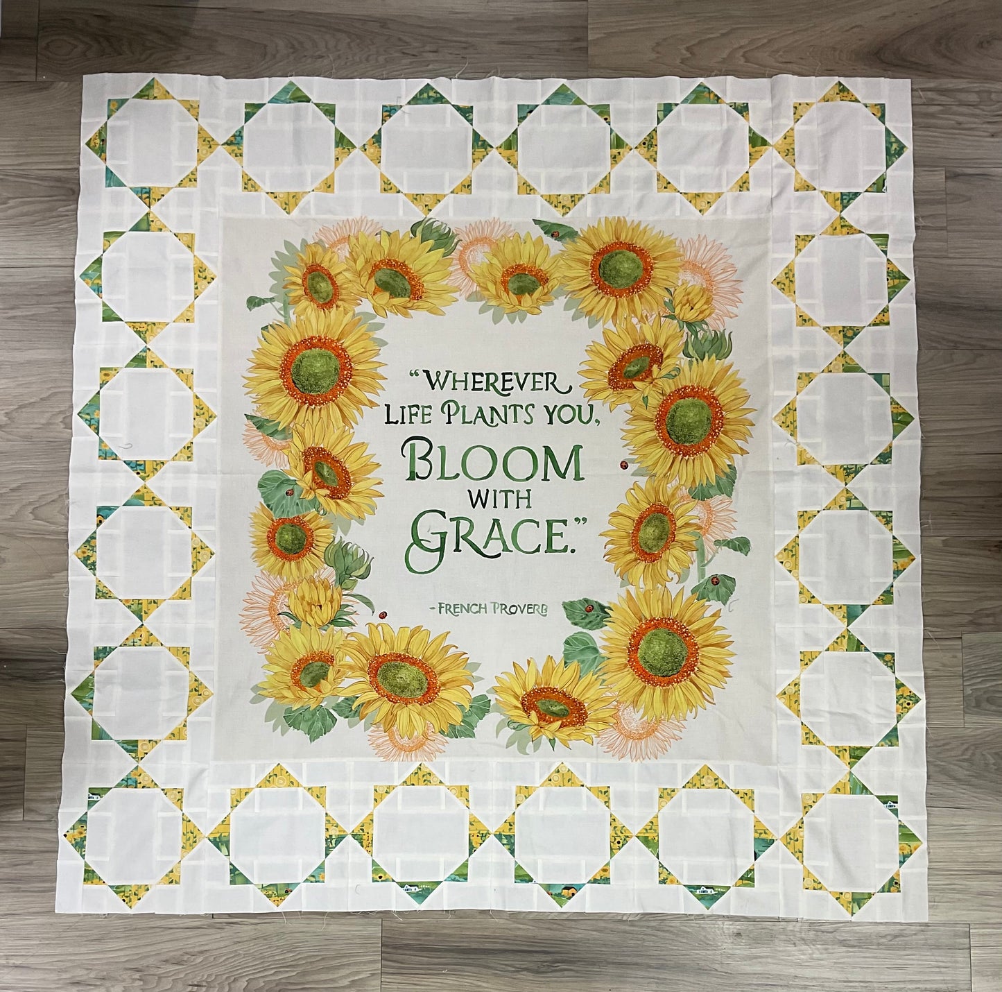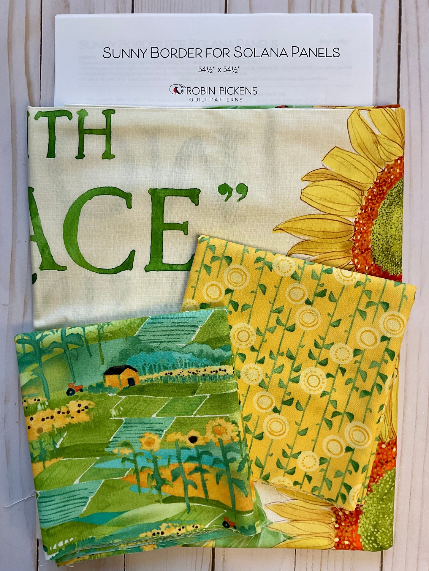 THIS IS NOT A FULL QUILT KIT! This kit-let includes the Sunny Border pattern, Solana sunflower panel, and two (2) different prints from the Solana collection to make the blocks but NOT BACKGROUND fabric. This gives you the opportunity to make your own design statement.
