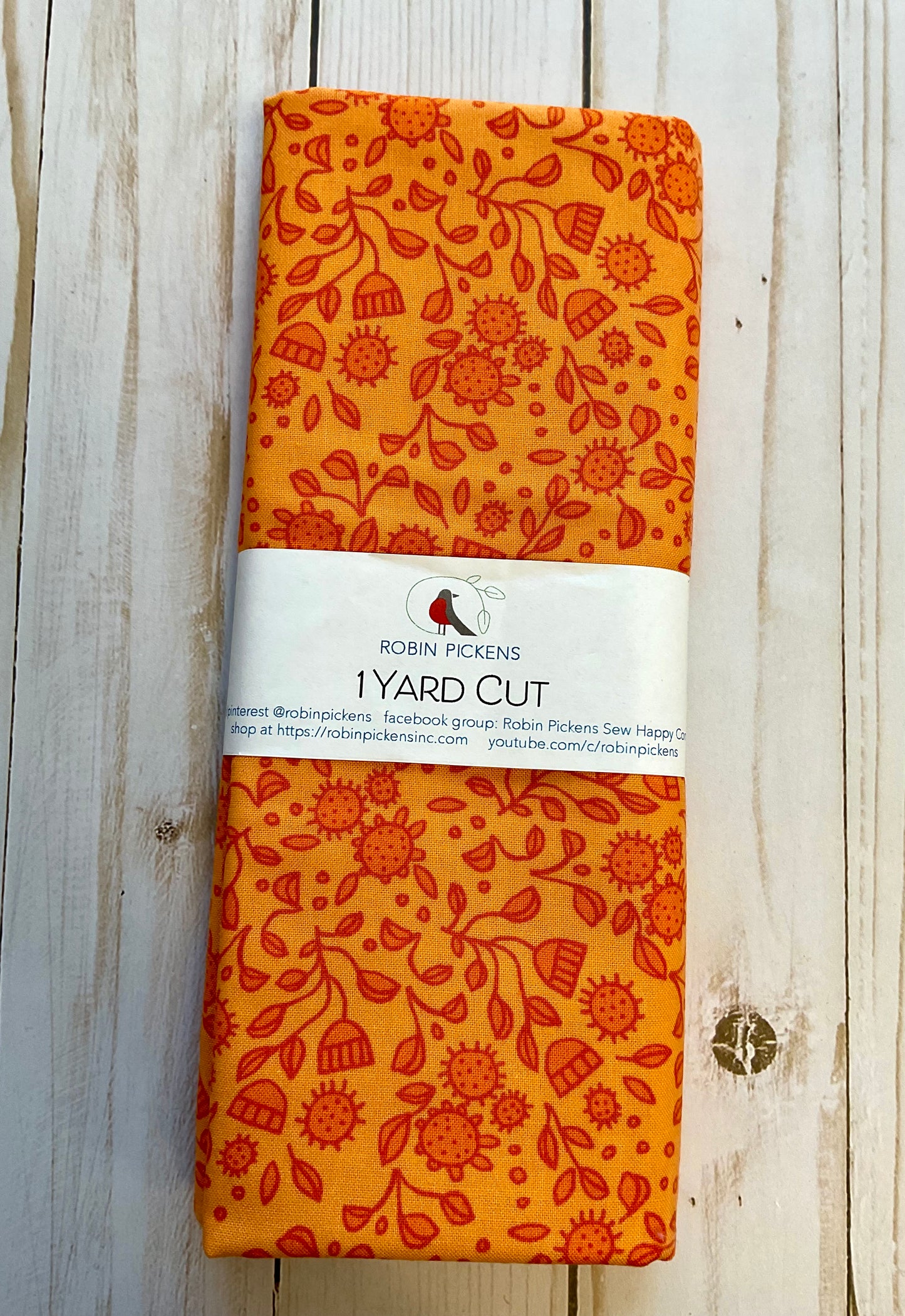This one (1) yard cut from the Abby Rose collection designed by Robin Pickens for Moda fabrics is a design of orange linear flowers and leaves on a light orange background.