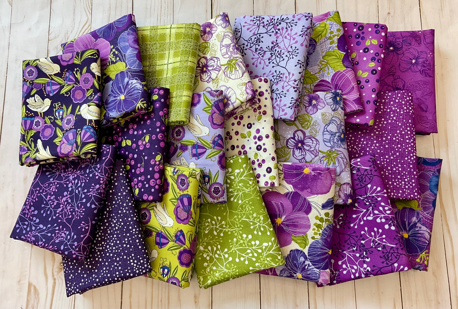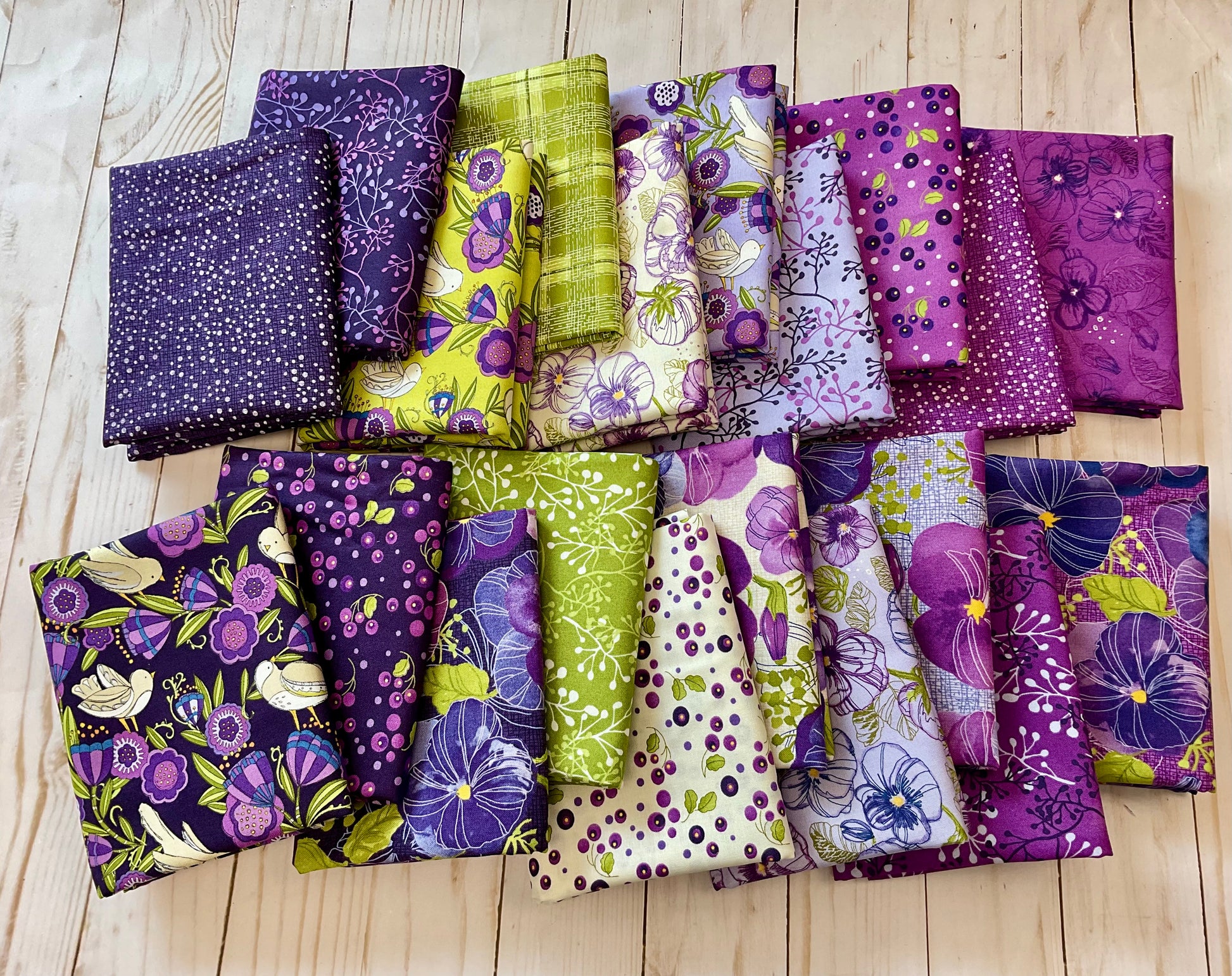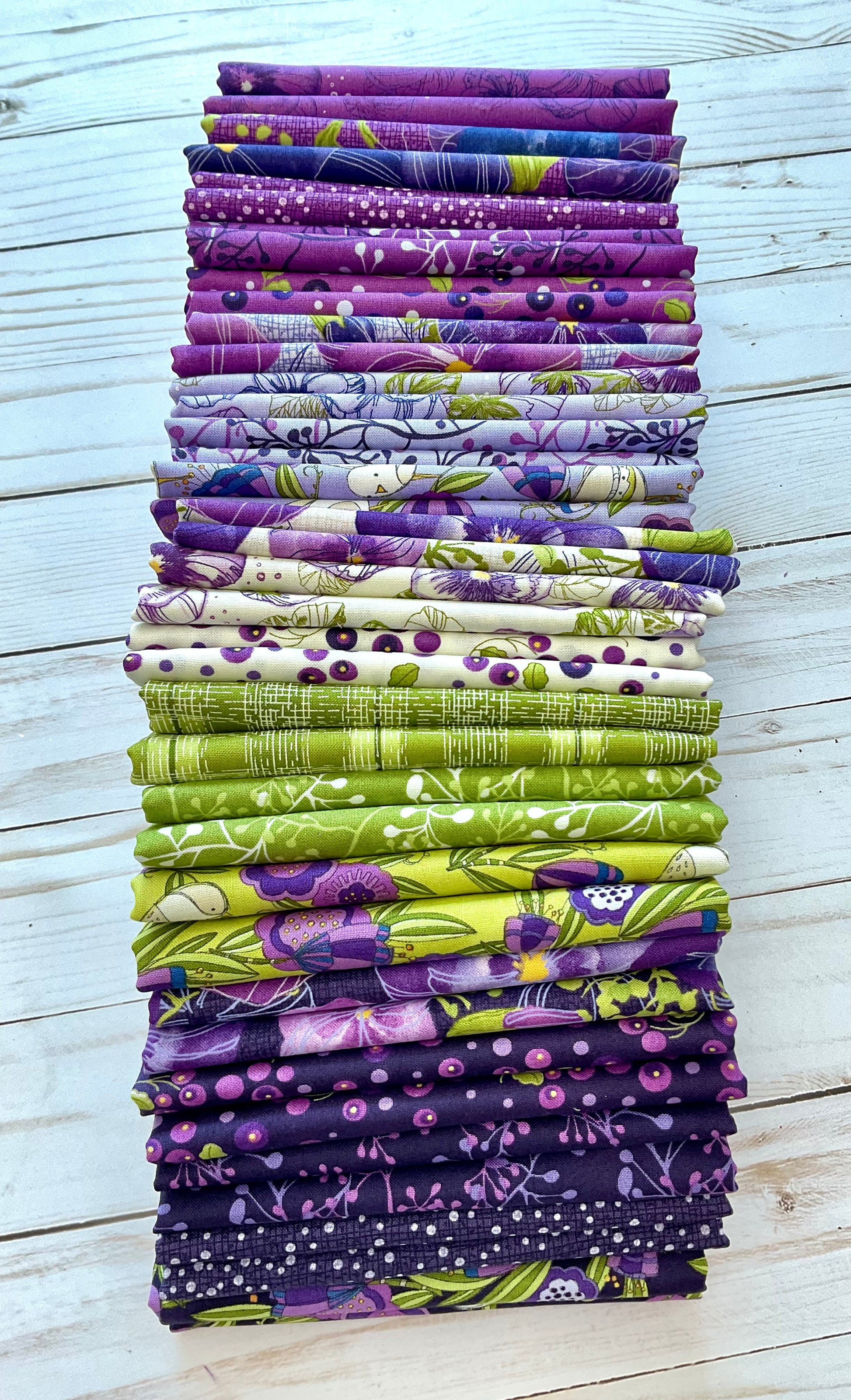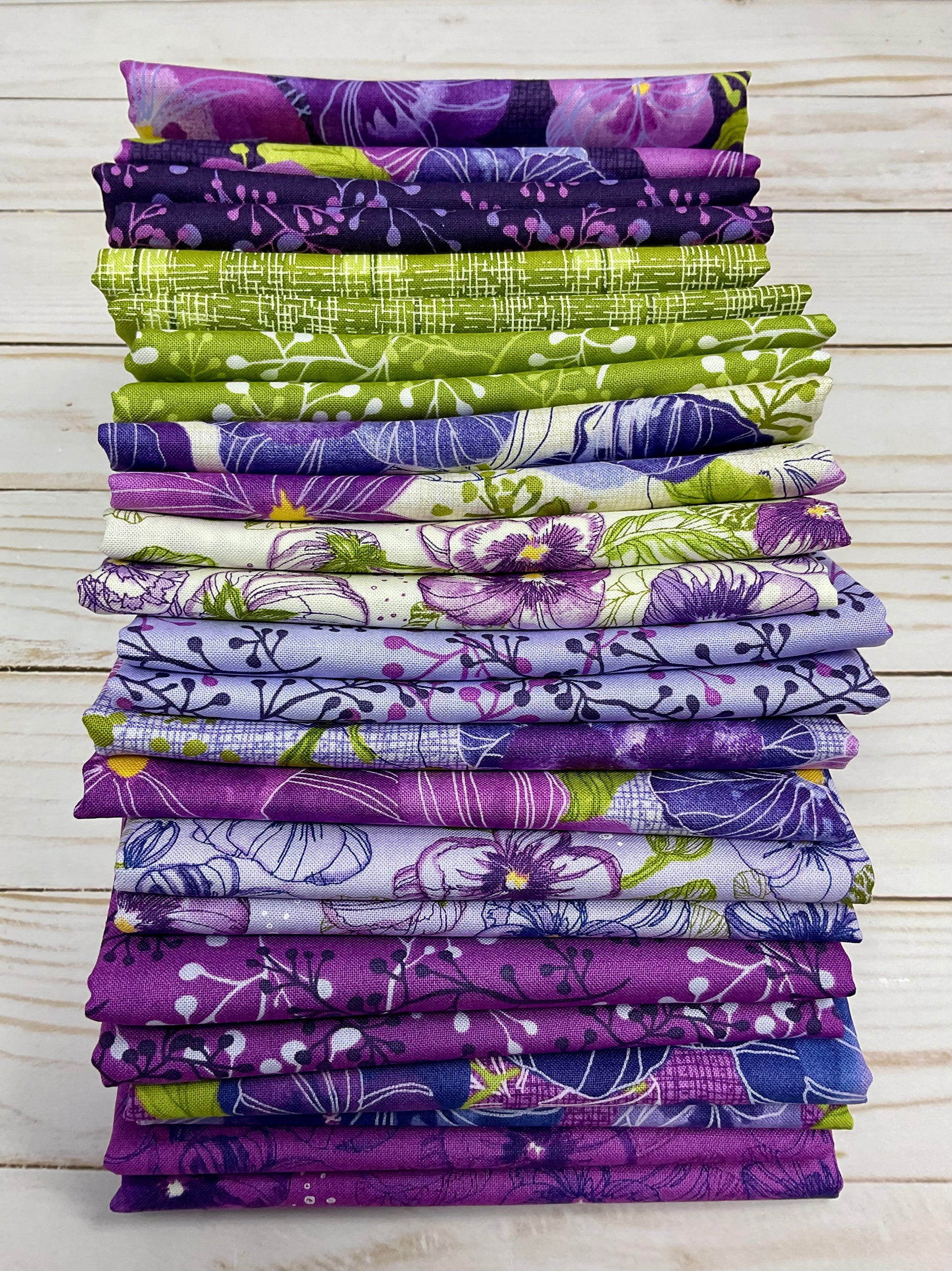 Pansy’s Posies Half Yard Bundle designed by Robin Pickens for Moda Fabrics, a curated collection of 11 vibrant fabrics featuring shades of purple, plum, lilac, and chartreuse green. This selected assortment showcases berries and posies, perfect for adding a sophisticated floral touch to your quilting, crafting, or other sewing projects. Each half-yard piece offers versatility and coordinated charm, making it an ideal choice for any quilter or maker seeking harmonious color and pattern combinations. Elevate your creative work with this thoughtfully curated bundle.