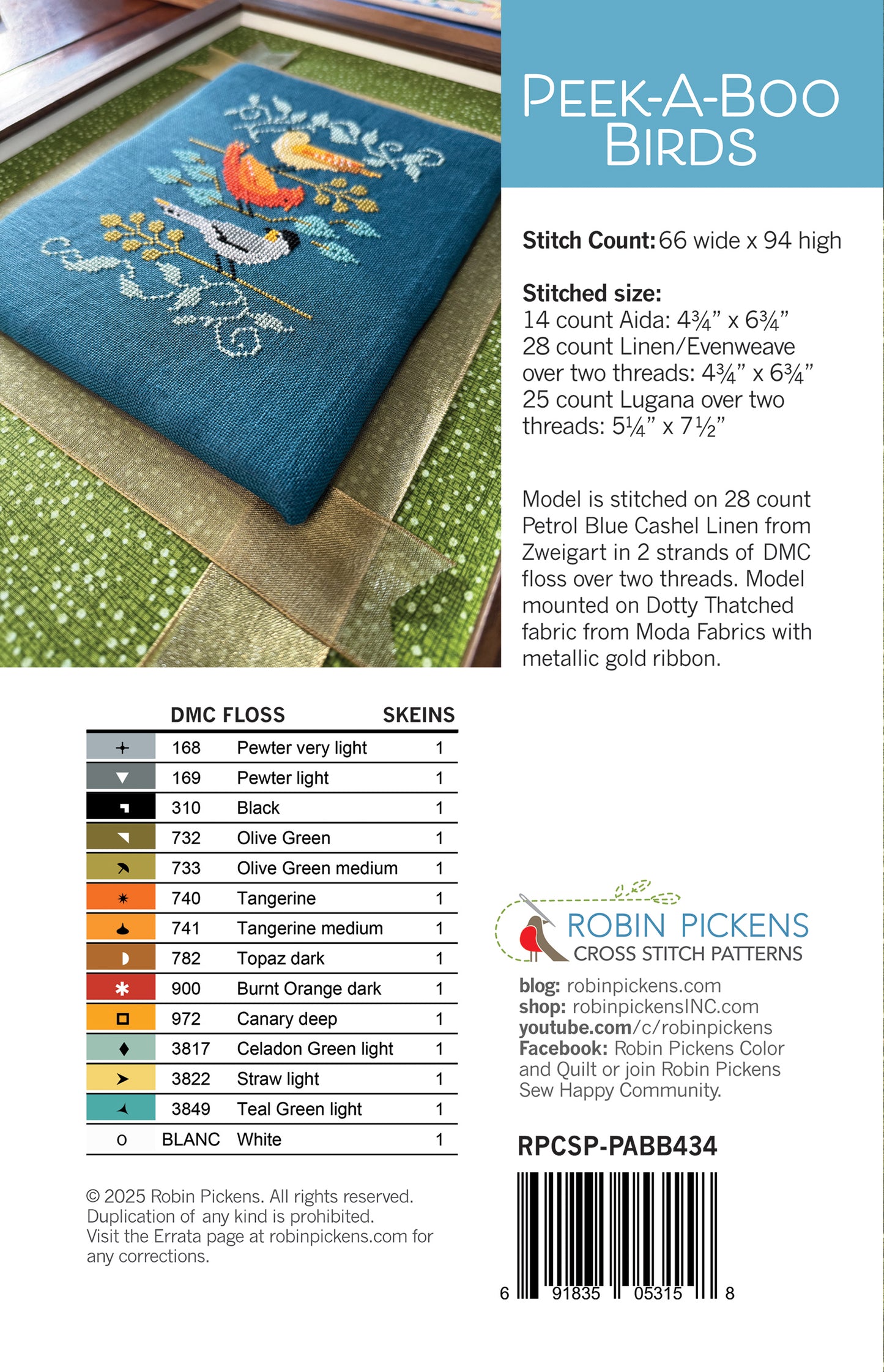 Chart is for your own stitching and not for copying, not for distributing in class or online or in any other way of mass reproduction. Copyright Robin Pickens. Please credit Robin Pickens as the designer when sharing photos of your work in shows or on social media. Please tag me @RobinPickens so I can see your work! Thank you!